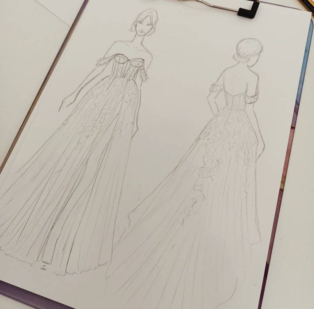 - Diseño personalizado: Con tu inspiración y mi experiencia, diseño un boceto único, exclusivo para ti. Elegimos juntas los tejidos, colores, y detalles que darán vida a tu vestido. Esta etapa es mágica: veras cómo tu idea empieza a tomar forma.